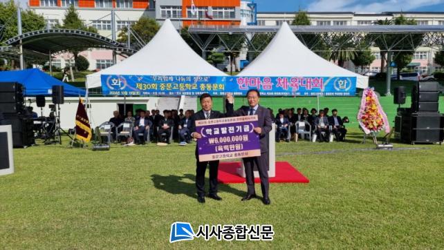[½Ã»çÁ¾ÇսŹ® = °í¼º¹Î ±âÀÚ] Áß¹®°íµîÇб³(±³Àå ¹é¿îÁÖ)´Â Áö³ 19ÀÏ Á¦30ȸ Áß¹®°íµîÇб³Ãѵ¿¹®È¸(ȸÀå °ÁøºÀ)¿Í ÃÊ´ëȸÀå(¿ÀÃæ³²)À¸·ÎºÎÅÍ Çб³¹ßÀü±â±ÝÀ» Àü´Þ¹Þ¾Ò´Ù.