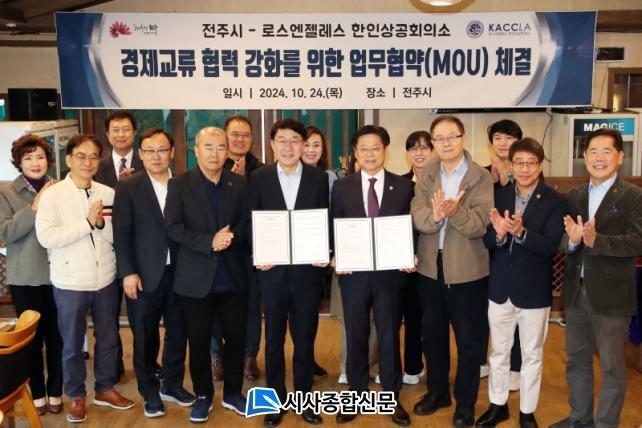ÀüÁÖ½Ã¿Í LAÇÑÀλó°øÈ¸ÀǼÒ(ȸÀå Á¤µ¿¿Ï)´Â 24ÀÏ ¿Ï»ê±¸ ³ë¼Ûµ¿ ¼ÒÀç ÇÑ ½Ä´ç¿¡¼ ¿ì¹ü±â ÀüÁÖ½ÃÀå°ú Á¤µ¿¿Ï ȸÀåÀ» ºñ·ÔÇÑ LAÇÑÀλó°øÈ¸ÀÇ¼Ò ÀÌ»çÁø 19¸í µîÀÌ Âü¼®ÇÑ °¡¿îµ¥ ¡®°æÁ¦±³·ù Çù·Â °È¸¦ À§ÇÑ ¾÷¹«Çù¾à(MOU)¡¯À» ü°áÇß´Ù.