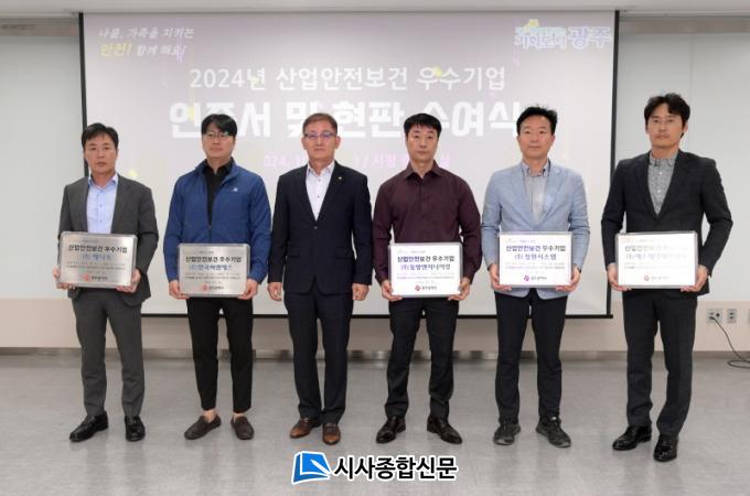ÇÑÆí, ±¤Áֽô À̳¯ Çà»ç¿¡¼ ¿Ã ÇϹݱ⠱¤Áֽà »ê¾÷¾ÈÀüº¸°Ç ¿ì¼ö±â¾÷À¸·Î ¼±Á¤µÈ ¡ã¢ßµ¿¹æ¿£Áö´Ï¾î¸µ(´ëÇ¥ ¹Ú¼¼ÁØ) ¡ã¢ß¼º¿ø½Ã½ºÅÛ(´ëÇ¥ ±èÀ¯Àç) ¡ã¢ß¿¡´ÏÆ®(´ëÇ¥ ±â¼Ûµµ) ¡ã¢ß¿¡½ºÁ¦ÀÌ¿¡ÇÁ¾ØÁö(´ëÇ¥ ±èÈ«ÁÖ) ¡ã¢ßÇѱ¹¾¾¾Ø¿¡½º(´ëÇ¥ ³ª¿ë¹ü) µî 5°÷¿¡ ÀÎÁõ¼¿Í ÇöÆÇ ¼ö¿©½ÄÀ» °¡Á³´Ù.