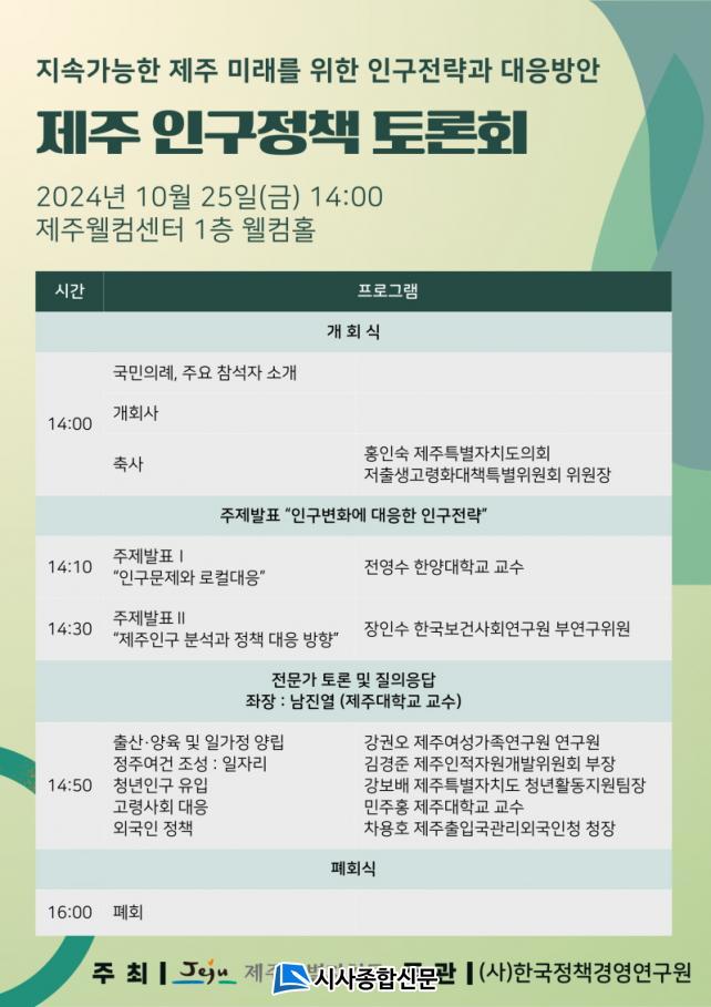 ¡®Àα¸±¸Á¶ º¯È¿¡ ´ëÀÀÇÏ´Â Á¦ÁÖÀÇ Àα¸Àü·«¡¯À̶ó´Â ÁÖÁ¦·Î ¿¸®´Â À̹ø Åä·Ðȸ´Â Àα¸°¨¼Ò¿¡ ´ëÀÀÇÑ ½ÇÈ¿¼º ÀÖ´Â Àα¸Á¤Ã¥À» ¼ö¸³Çϱâ À§ÇØ ¸¶·ÃµÆ´Ù.