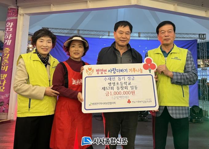[½Ã»çÁ¾ÇսŹ® = ¿À½ÂÅà ±âÀÚ] °Áø º´¿µÃʵîÇб³ Á¦57ȸ µ¿Ã¢È¸(ȸÀå ¹Úº¹±â)°¡ º´¿µ¸é ¼öÀç¹ÎÀ» µ½±â À§ÇØ Áö³ 19ÀÏ, º´¿µ ºÒ±ÝºÒÆÄ Çà»çÀå¿¡¼ º´¿µ¸éÁö¿ª»çȸº¸ÀåÇùÀÇü¿¡ 100¸¸ ¿øÀ» ÁöÁ¤¡¤±âŹÇß´Ù.