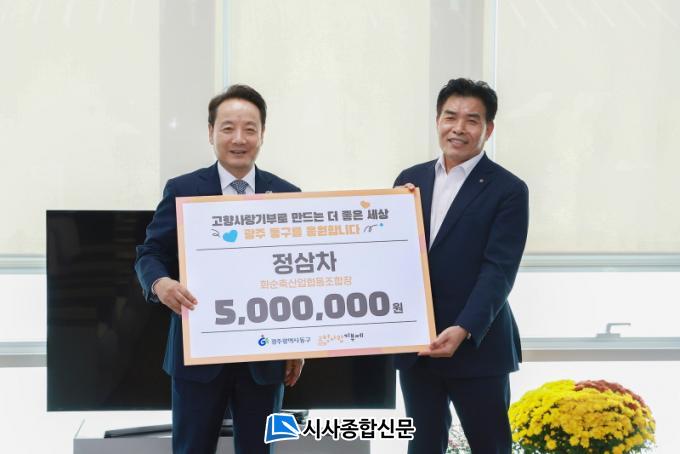 [½Ã»çÁ¾ÇսŹ® = ¿À½ÂÅà ±âÀÚ] ±¤Áֽà µ¿±¸(ûÀå ÀÓÅÃ)´Â °ü³» À§Ä¡ÇÑ ¼¼Á¾¿ä¾çº´¿ø(ȸÀå ±¸Á¦±æ)°ú ȼøÃà»ê¾÷Çùµ¿Á¶ÇÕ(Á¶ÇÕÀå Á¤»ïÂ÷)ÀÌ °íÇâ»ç¶û±âºÎ±Ý ÃÖ°í¾×ÀÎ 5¹é¸¸ ¿øÀ» »óÈ£ ±âºÎÇϱâ·Î ¾à¼ÓÇÔÀ¸·Î½á µÎ Áö¿ªÀÇ »ó»ý ¹ßÀü¿¡ ¶æÀ» ¸ðÀº´Ù°í ¹àÇû´Ù.