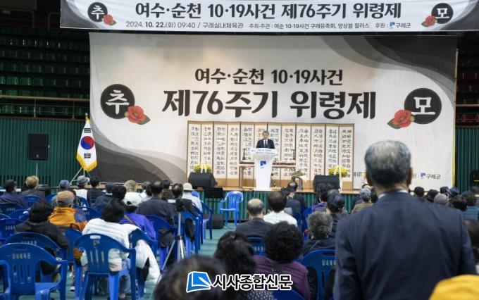 À̳¯ Çà»ç¿¡´Â À̱ÔÁ¾ ¿©¼ø 10․19»ç°Ç ±¸·ÊÀ¯Á·È¸ÀåÀ» ºñ·ÔÇÑ ¿©¼ø»ç°Ç Èñ»ýÀÚÀÇ À¯°¡Á·°ú ±è¼øÈ£ ±¸·Ê±º¼ö, À屿¼± ±¸·Ê±ºÀÇȸ ÀÇÀå, ¾ç±¤Èñ ±¸·Ê°æÂû¼Àå, ½ÅÁ¦¼º ±¸·Ê±³À°Áö¿øÃ» ±³À°Àå µî 250¿© ¸íÀÌ Âü¼®ÇØ Èñ»ýÀÚ¸¦ Ã߸ðÇϰí, ¿ª»çÀû ºñ±Ø¿¡ ´ëÇÑ ±º¹ÎµéÀÇ ÀÌÇØ¿Í °ø°¨À» À̲ø¾î ³Â´Ù.