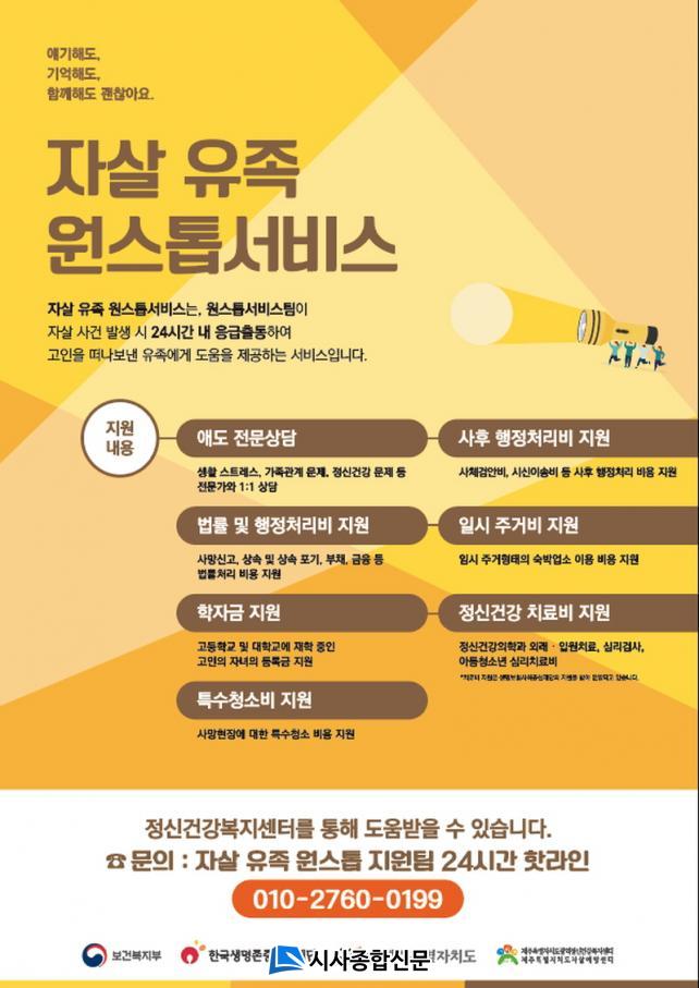 Á¦ÁÖµµ´Â ÀÌ·¯ÇÑ Çö½ÇÀ» °í·ÁÇØ ¡®ÀÚ»ì À¯Á· ¿ø½ºÅé ¼ºñ½º¡¯¸¦ ¸¶·ÃÇß´Ù. ÀÌ ¼ºñ½º´Â ÀÚ»ì À¯Á·µéÀÌ »ç°Ç ¹ß»ý ÃʱâºÎÅÍ ½Å¼ÓÇÏ°Ô Áö¿ø¹ÞÀ» ¼ö ÀÖµµ·Ï »ç·Ê¸¦ ¹ß±¼Çϰí Áö¼ÓÀûÀ¸·Î °ü¸®ÇÏ´Â °ÍÀ» ¸ñÇ¥·Î ÇÑ´Ù.