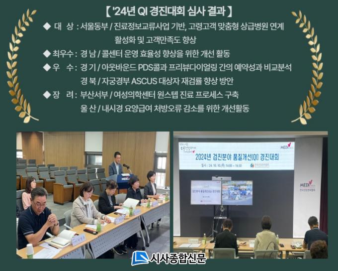 À̳¯ °æÁø´ëȸ¿¡¼´Â °ÇÇù 17°³ ½Ã¡¤µµÁöºÎÀÇ °ËÁø°ü¸®(Áø´Ü°Ë»ç, ¿µ»ó°Ë»ç, ¼Òȱ⠳»½Ã°æ µî) ¹× °í°´°ü¸®(°í°´°ü¸®, °í°´Áö¿ø) ºÐ¾ß¿¡ ´ëÇÑ QIȰµ¿ ¿ì¼ö»ç·Ê¸¦ ¹ßÇ¥Çß´Ù. °¢ ÁöºÎÀÇ ¾÷¹«ºÐ¼® ¹× °³¼±À» À§ÇÑ ÇÁ·Î¼¼½º Àû¿ë»ç·Ê·Î, À̳¯ ½É»ç¸¦ ÅëÇØ ´ë»ó, ÃÖ¿ì¼ö, ¿ì¼ö, Àå·Á µî 4°³ ºÎ¹® 6°³ ÁöºÎÀÇ ¿ì¼ö»ç·Ê°¡ ¼±Á¤µÆ´Ù.