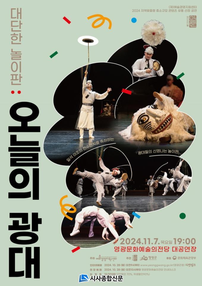 ¡®2024³â Áö¿ª¸ÂÃãÇü Áß¼Ò±Ô¸ð ÄÜÅÙÃ÷ À¯Åë Áö¿ø»ç¾÷¡¯¿¡ ¼±Á¤µÈ °ø¿¬À¸·Î ¿¹¼ú°æ¿µÁö¿ø¼¾ÅͰ¡ ÁÖÃÖÇϰí, ¿µ±¤±º°ú ¿¹ÀÎÁý´Ü ¾Æ¶óÇÑÀÌ ÁÖ°ü, ¹®ÈüÀ°°ü±¤ºÎ°¡ ÈÄ¿øÇÑ´Ù. °ü¶÷·á´Â 10,000¿ø(¿µ±¤±º¹Î-3,000¿ø, Áß¡¤°íµîÇлý ÀÌÇÏ-1,000¿ø)À̸ç, ÀÔÀå±ÇÀº ƼÄϸµÅ©¸¦ ÅëÇØ ÀÎÅÍ³Ý ¿¹¸Å¸¦ Çϰųª ¿µ±¤¹®È¿¹¼úÀÇÀü´ç ¾È³»µ¥½ºÅ©¿¡¼ ÇöÀ忹¸Å°¡ °¡´ÉÇÏ´Ù.