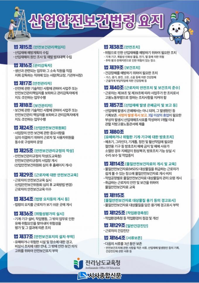 [½Ã»çÁ¾ÇսŹ® = ¿À½ÂÅà ±âÀÚ] Àü¶ó³²µµ±³À°Ã»(±³À°°¨ ±è´ëÁß)Àº µµ³» Çб³(±â°ü)ÀÇ »ê¾÷¾ÈÀüº¸°Ç¹ý·É Àǹ«ÀÌÇà »çÇ× Áؼö ¹× »ê¾÷ÀçÇØ ¿¹¹æÀ» À§ÇØ ¡®»ê¾÷¾ÈÀüº¸°Ç¹ý·É ¿äÁö¡¯¿Í ¡®¾ÈÀü¼öÄ¢¡¯Æ÷½ºÅ͸¦ Á¦ÀÛÇØ ¹èºÎÇß´Ù.
