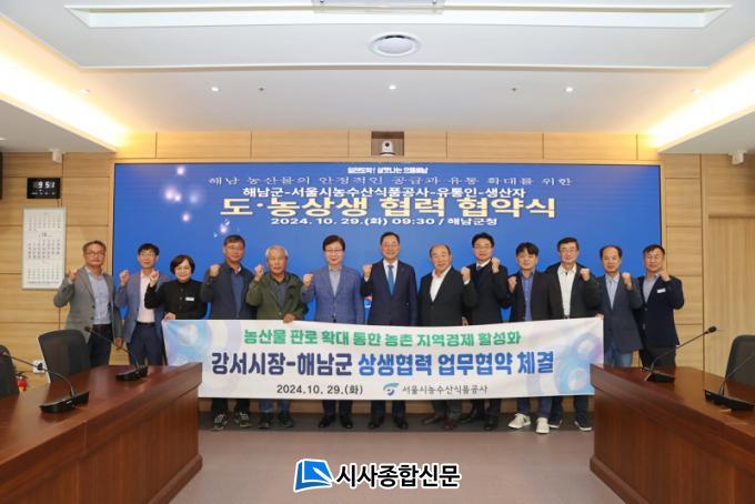 À̳¯ Çù¾à½Ä¿¡´Â ¸íÇö°ü ÇØ³²±º¼ö¿Í ÇØ³²±º »ý»ê¡¤À¯ÅëÀÎ ´Üü, ¼¿ï½Ã³ó¼ö»ê½Äǰ°ø»ç ¹®¿µÇ¥ »çÀå¿Í Çѱ¹½ÃÀåµµ¸ÅÀο¬ÇÕȸ ÀÓ¼ºÂù ȸÀå, ³óÇù°¼°øÆÇÀå ÀÌÁؽ »çÀåÀÌ Âü¼®Çß´Ù.