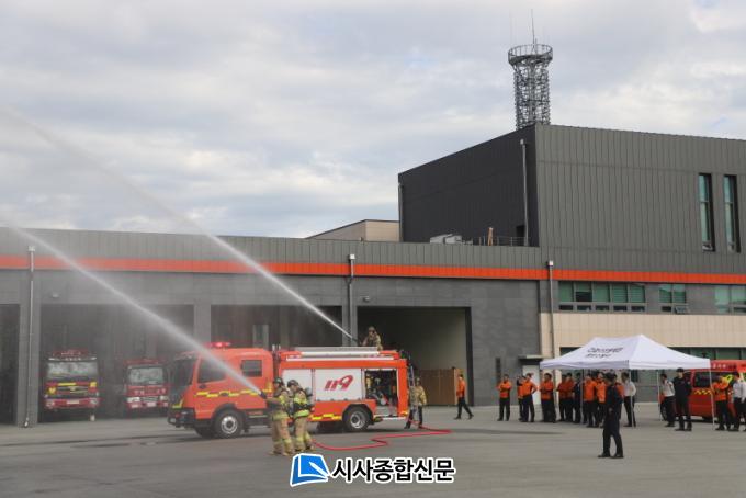 ¹ÚÃáõ ¿Ïµµ¼Ò¹æ¼Àå µî ¿Ïµµ¼Ò¹æ¼ Á÷¿øµéÀÌ Âü¼®ÇÑ ½Ã¿¬È¸´ÂCAFS ¼Ò¹æÂ÷·®¿¡ ´ëÇÑ Á¤º¸ Àü´Þ°ú ¼º´É ½Ã¿¬À» ÅëÇØ ÈÀç ÇöÀå¿¡¼ ¹ßÈֵǴ ÃÖÀûÀÇ ¼ÒÈ´É·ÂÀ» È®ÀÎÇϰíÀÚ ¸¶·ÃµÆÀ¸¸ç, Â÷·®ÀÌ ¹èÄ¡µÈ ¿Ïµµ119¾ÈÀü¼¾ÅÍ¿¡¼ CAFS Â÷·® Á¦¿ø, ¾÷ü Á¦Ç° µîÀ» ¼³¸íÇÑ ÈÄ Â÷·® Á¶ÀÛ¤ý¹æ¼ö´É·ÂÀ» ½Ã¹üÇÏ´Â ¹æ½ÄÀ¸·Î ÁøÇàµÆ´Ù..