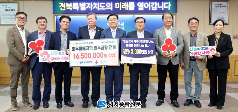 [½Ã»çÁ¾ÇսŹ® = ¿À½ÂÅà ±âÀÚ] (»ç)Àü±¹ÇÑ¿ìÇùȸ ÀüºÏÀÚÄ¡µµÁöȸ(ȸÀå Á¤À±¼·)´Â µµ³» È£¿ìÇÇÇØ Áö¿ª¿¡ Àü´ÞÇØ´Þ¶ó¸ç ÇÑ¿ì°õÅÁ 3õ°³(1õ7¹é¸¸¿ø »ó´ç)À», (»ç)´ëÇÑÇѵ·Çùȸ ÀüºÏÀÚÄ¡µµÇùÀÇȸ(ȸÀå À̳²±Õ)¿¡¼µµ Áö¿ª»çȸ ¼Ò¿ÜµÈ ÀÌ¿ô¿¡°Ô µÅÁö°í±â 3,100§¸(3õ¸¸¿ø »ó´ç)À» ÀüºÏÀÚÄ¡µµ¿¡ ±âŹÇß´Ù.