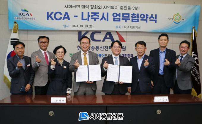 Çù¾à½Ä¿¡´Â À±º´Å ³ªÁÖ½ÃÀå°ú ÀÌ»óÈÆ KCA ¿øÀåÀ» ºñ·ÔÇØ °ü°èÀÚ 8¸íÀÌ Âü¼®ÇÏ¿© Çù·ÂÀÇ Àǹ̸¦ ´õÇß´Ù. ¾ç ±â°üÀº Çù¾àÀ» ¹ÙÅÁÀ¸·Î Á¤º¸ °øÀ¯, °øµ¿ ÇÁ·ÎÁ§Æ® ÃßÁø, ¸ÂÃãÇü º¹Áö ÇÁ·Î±×·¥ °³¹ß µîÀ» ÅëÇØ ½ÇÁúÀûÀÎ Áö¿ª»çȸ º¹Áö Çâ»ó¿¡ ±â¿©ÇÏ°í »ó»ý ¸ðµ¨ ±¸Ãà¿¡ Èû¾µ °èȹÀÌ´Ù.