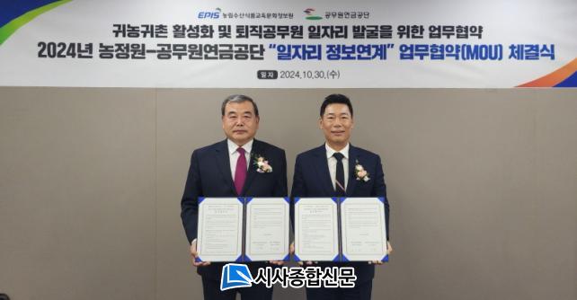 [½Ã»çÁ¾ÇսŹ® = °í¼º¹Î ±âÀÚ] °ø¹«¿ø¿¬±Ý°ø´Ü(ÀÌ»çÀå ±èµ¿±Ø)Àº 30ÀÏ ³ó¸²¼ö»ê½Äǰ±³À°¹®ÈÁ¤º¸¿ø(¿øÀå ÀÌÁ¾¼ø)°ú ÅðÁ÷°ø¹«¿øÀÇ ÀÏÀÚ¸® ¹ß±¼ ¹× ³óÃÌÁö¿ª ¹ßÀüÀ» À§ÇÑ ¾÷¹«Çù¾àÀ» ü°áÇß´Ù.
