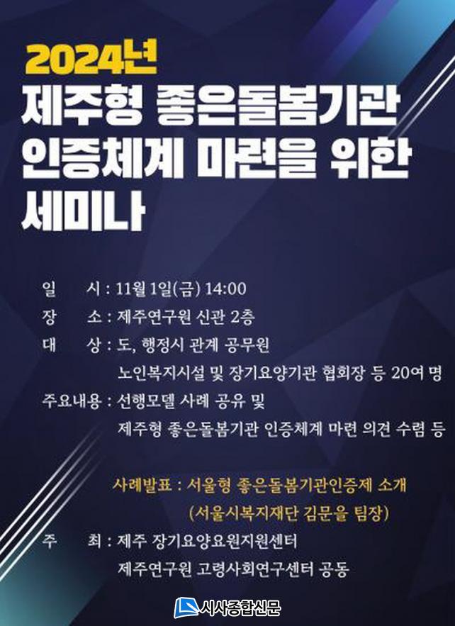 ¡¸Á¦1Â÷ Á¦ÁÖÆ¯º°ÀÚÄ¡µµ Àå±â¿ä¾ç¿ä¿ø Áö¿ø°èȹ(2023~2027³â)¡¹¿¡ µû¶ó ¡®Á¦ÁÖÇü ÁÁÀºµ¹º½±â°ü ÀÎÁõü°è ¸¶·Ã¡¯À» À§ÇØ ÁøÇàµÇ´Â º» ¼¼¹Ì³ª´Â µµ³» Àå±â¿ä¾ç±â°ü ´ëÇ¥(ÇùȸÀå)¸¦ ºñ·ÔÇØ Á¦ÁÖµµ ¹× ÇàÁ¤½Ã(Á¦ÁÖ½Ã, ¼±ÍÆ÷½Ã) °ü°è °ø¹«¿øµéÀÌ Âü¼®ÇÒ ¿¹Á¤ÀÌ´Ù.