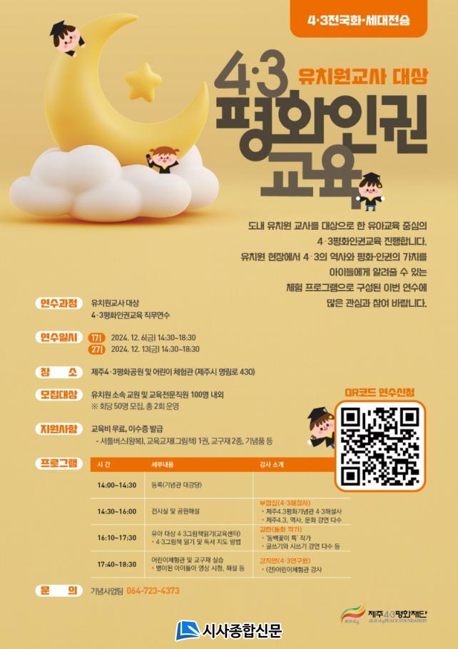 Á¦ÁÖ4․3ÆòÈÀç´ÜÀº ±×°£ ÃÊ․Áß․°íµîÇб³ ±³¿ø Áß½ÉÀ¸·Î ¿î¿µµÆ´ø 4․3ÆòÈÀαDZ³À° Á÷¹«¿¬¼ö¸¦ À¯Ä¡¿ø±³»ç ¹× ±³À°Àü¹®Á÷¿øÀ¸·Î ´ë»óÀ» È®´ë½Ã۰í, À¯¾Æ ¿¬·ÉÃþ¿¡ ¸Â´Â ±³À° ÇÁ·Î±×·¥À» ±¸¼ºÇØ ³»½Çȸ¦ ±âÇÒ °èȹÀÌ´Ù.