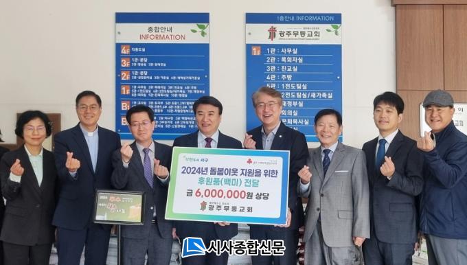 [½Ã»çÁ¾ÇսŹ® = ¿À½ÂÅà ±âÀÚ] ±èÀ̰ ±¤ÁÖ ¼±¸Ã»ÀåÀº 31ÀÏ ¿ÀÀü ¹«µî±³È¸(´ãÀÓ¸ñ»ç ¿À¿ë¼±)·ÎºÎÅÍ °ü³» ÀÌ¿ôµ¹º½ÀÌ ÇÊ¿äÇÑ Áֹο¡°Ô Áö¿øÇÒ ¹é¹Ì 200Æ÷(600¸¸¿ø)¸¦ Àü´Þ¹Þ°í °¨»çÀÇ ¸¶À½À» ÀüÇß´Ù.