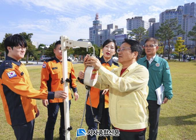[½Ã»çÁ¾ÇսŹ® = ¿À½ÂÅà ±âÀÚ] ±¤ÁÖ±¤¿ª½Ã(½ÃÀå °±âÁ¤)´Â ÈÀç ´ëÀÀ ¿ª·®À» °ÈÇϱâ À§ÇØ 31ÀÏ ¿ÀÈÄ 2½ÃºÎÅÍ 20ºÐ °£ ½Ãû»ç¿¡¼ ¡®ÈÀç ´ëºñ ¹Î¹æÀ§ ÈÆ·Ã¡¯À» ½Ç½ÃÇß´Ù.