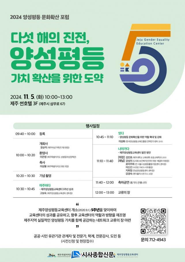 [½Ã»çÁ¾ÇսŹ® = °í¼º¹Î ±âÀÚ] Á¦ÁÖ¿©¼º°¡Á·¿¬±¸¿ø Á¦Á־缺Æòµî±³À°¼¾ÅÍ(¼¾ÅÍÀå °íº¸¼÷)Àº 11¿ù 5ÀÏ(È) ¿ÀÀü 10½Ã Á¦ÁÖ½ãÈ£ÅÚ 3Ãþ¿¡¼ ¡°´Ù¼¸ ÇØÀÇ ÁøÀü, ¾ç¼ºÆòµî °¡Ä¡È®»êÀ» À§ÇÑ µµ¾à¡±À̶õ ÁÖÁ¦·Î 2024 ¾ç¼ºÆòµî ¹®ÈÈ®»ê Æ÷·³À» °³ÃÖÇÑ´Ù.