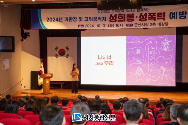 [½Ã»çÁ¾ÇսŹ® = ¿À½ÂÅà ±âÀÚ] ±º»ê½Ã(½ÃÀå °ÀÓÁØ)´Â Áö³ 31ÀÏ ½Ãû ´ë°´ç¿¡¼ ±â°üÀå ¹× °íÀ§°øÁ÷ÀÚ¸¦ ´ë»óÀ¸·Î ¼ºÈñ·Õ¡¤¼ºÆø·Â ¿¹¹æ±³À°À» ½Ç½ÃÇß´Ù.