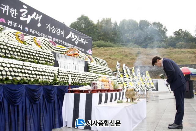 ¿ì¹ü±â ÀüÁÖ½ÃÀåÀº À̳¯ Ã߸ð»ç¿¡¼ ¡°ÀÚÀ¯¿Í ÆòÈ ¼öÈ£¸¦ À§ÇØ ¸ñ¼ûÀ» ¹ÙÃÆ´ø ¿ì¸® Áö¿ª ¿µ·ÉµéÀÇ Çå½ÅÀ» µÇ»õ±â¸ç, ¿µ¿øÇÑ ¾È½ÄÀ» ±â¿øÇÑ´Ù¡±¸ç È£±¹¿µ·ÉÀÇ ³ÌÀ» À§·ÎÇß´Ù.