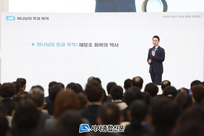 À¯Àç¿í ÁöÆÄÀåÀº ¡°½Å¾ÓÀÇ ±âÁØÀº ¼º°æÀÌ°í ±× ¾à¼Ó´ë·Î ÀÌ·ïÁø´Ù´Â °ÍÀ» ¾Ë¾Æ¾ß ÇÑ´Ù¡±°í °Á¶Çß´Ù. ±×´Â ¡°Çϳª´Ô°úÀÇ ¾à¼ÓÀÌ ¿À´Ã³¯·ÎºÎÅÍ 6000³â Àü ¾Æ´ãÀ¸·Î ½ÃÀ۵ƴÙ. ÇÏÁö¸¸ ¾Æ´ãÀÇ ¹üÁË·Î Çϳª´ÔÀº Áö±¸ÃÌÀ» ¶°³ª¼Å¾ß Çß´Ù. ÀÌÈÄ, ÀÌ ¶¥¿¡ ÇÔ²²ÇÒ ¼ö Àִ õ±¹À¸·Î ȸº¹Çϱâ À§ÇØ ÀçâÁ¶ÀÇ ¿ª»ç¸¦ ÆîÃÄ¿À¼Ì´Âµ¥ ±×°ÍÀÌ ¼º°æ¡±À̶ó°í ¼³¸íÇß´Ù.