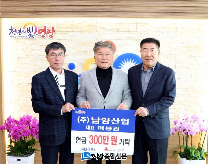 [½Ã»çÁ¾ÇսŹ® = ¿À½ÂÅà ±âÀÚ] Áö³ 5ÀÏ ¢ß³²¾ç»ê¾÷(´ëÇ¥ À̺À±Ç)Àº ¿µ±¤±º(±º¼ö Àå¼¼ÀÏ)¿¡ Çö±Ý 300¸¸ ¿øÀ» ±âŹÇÏ¿´´Ù.
