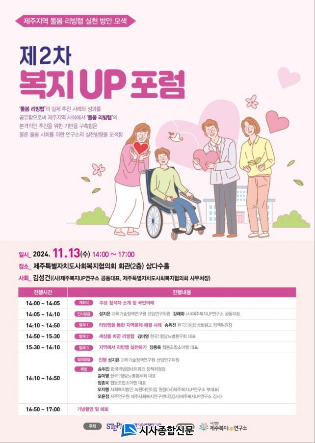 »ç´Ü¹ýÀÎ Á¦ÁÖº¹Áöup¿¬±¸¼Ò´Â Áö³ 2023³â 5¿ù¿¡ ⸳ÇÏ¿© Á¦ÁÖÁö¿ª Ư¼ºÀ» ¹Ý¿µÇÑ »çȸº¹ÁöÁ¤Ã¥À» ¹ß±¼¡¤Á¦¾ÈÇÏ°í »çȸº¹Áö»ç¾÷ ¹× ±³À° µîÀ» ÅëÇØ µµ¹ÎÀÇ º¹Áöü°¨µµ Çâ»ó¿¡ ±â¿©Çϱâ À§ÇÑ È°µ¿À» Çϰí ÀÖ´Ù.