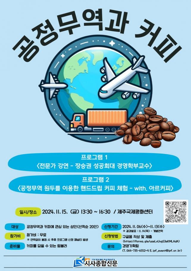 | (Àç)±¹Á¦ÆòÈÀç´Ü, '°øÁ¤¹«¿ª°ú Ä¿ÇÇ' °¿¬ ¹× üÇè ÇÁ·Î±×·¥ Âü°¡ÀÚ ¸ðÁý ±¹Á¦ÆòÈÀç´ÜÀº 11¿ù 15ÀÏ Á¦ÁÖ±¹Á¦Æòȼ¾ÅÍ 1Ãþ Á¦ÁÖ ±¹¹Î¿Ü±³¼¾ÅÍ¿¡¼ ÁøÇà ¿¹Á¤ÀÎ ¡®°øÁ¤¹«¿ª°ú Ä¿ÇÇ¡¯ ÇÁ·Î±×·¥ Âü°¡ÀÚ¸¦ ¸ðÁýÇÑ´Ù. |