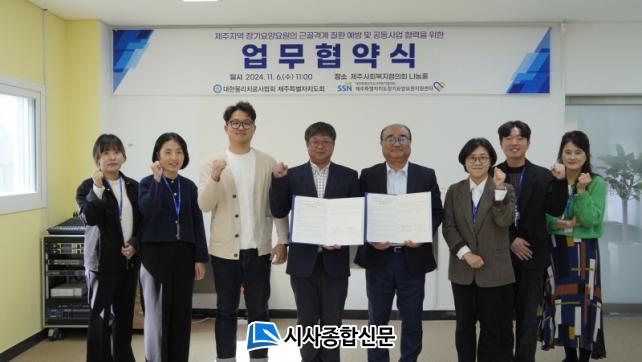 [½Ã»çÁ¾ÇսŹ® = °í¼º¹Î ±âÀÚ] Á¦ÁÖÆ¯º°ÀÚÄ¡µµ Àå±â¿ä¾ç¿ä¿øÁö¿ø¼¾ÅÍ(¼¾ÅÍÀå ±è¼º°Ç)´Â Áö³ 6ÀÏ(¼ö) Á¦ÁÖ»çȸº¹ÁöÇùÀÇȸ ³ª´®È¦¿¡¼ ´ëÇѹ°¸®Ä¡·á»çÇùȸ Á¦ÁÖÆ¯º°ÀÚÄ¡µµÁöºÎ(ȸÀå °í¿ë¼ö)¿Í ¡®Á¦ÁÖÁö¿ª Àå±â¿ä¾ç¿ä¿øÀÇ ±Ù°ñ°Ý°èÁúȯ ¿¹¹æ°ú °øµ¿»ç¾÷ Çù·ÂÀ» À§ÇÑ ¾÷¹«Çù¾à¡¯À» ü°áÇß´Ù.