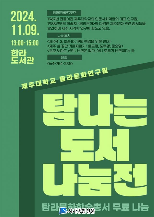 À̹ø µµ¼³ª´®ÀüÀº 2024 Á¦ÁÖ´ëÇб³ ±¹¸³´ëÇÐÀ°¼º»ç¾÷ ¡®Á¦ÁÖÁö¿ª °íÀ¯ ¹®È ¹× ¿ª»ç ¿¬±¸ Ȱ¼ºÈ¸¦ À§ÇÑ Å½¶ó¹®È¿¬±¸ Áö¿ø»ç¾÷¡¯ÀÇ ÀÏȯÀ¸·Î °³ÃֵȴÙ. Çà»ç ¹®ÀÇ´Â Á¦ÁÖ´ëÇб³ Ž¶ó¹®È¿¬±¸¿ø(754-2310)À¸·Î ÇÏ¸é µÈ´Ù.