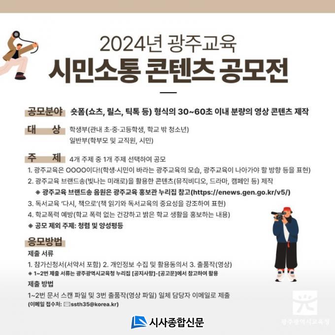 ±¤Áֽñ³À°Ã»Àº À̹ø °ø¸ð¸¦ ÅëÇØ ±¤ÁÖ±³À° Á¤Ã¥¿¡ ´ëÇÑ ±³À°°¡Á·°ú ½Ã¹ÎµéÀÇ °ü½ÉÀÌ ³ô¾ÆÁö°í, Âü½ÅÇÑ ÄÜÅÙÃ÷°¡ ¹ß±¼µÉ °ÍÀ¸·Î ±â´ëÇϰí ÀÖ´Ù.
