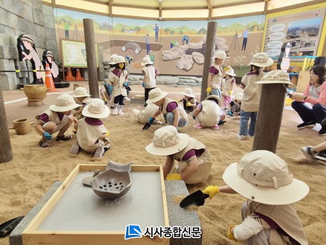 üÇèÀº Á¤À¾¿¡¼ ¹ß°ßµÈ À¯ÀûÀ» ±×´ë·Î ÀçÇöÇÑ ¹ß±¼ üÇèÀå¿¡¼ ÀÌ·ïÁø´Ù. Âü°¡ ¾î¸°À̵éÀº ¹ß±¼ µµ±¸¸¦ »ç¿ëÇØ ¸ð·¡ ¼Ó¿¡ ¼û°ÜÁø À¯¹°µéÀ» ã¾Æ³»°í, Àü¹®°¡ÀÇ µµ¿òÀ» ¹Þ¾Æ À¯¹°ÀÇ ÀÇ¹Ì¿Í °¡Ä¡¸¦ ޱ¸ÇÏ´Â ½Ã°£À» °¡Áø´Ù. ÀÌ °úÁ¤À» ÅëÇØ ¾ÆÀ̵éÀº À¯¹° ¹ß±¼ÀÇ Àç¹Ì»Ó¸¸ ¾Æ´Ï¶ó ¹®ÈÀ¯»ê º¸Á¸ÀÇ Á߿伺µµ ÀÚ¿¬½º·´°Ô ÀÍÈ÷°Ô µÈ´Ù.