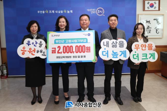 Èñ¸Á±³À°°³¹ß¿ø ±è°æÈñ ¿øÀåÀº 2³â ¿¬¼Ó ¹«¾È±º °íÇâ»ç¶û±âºÎÁ¦¿¡ Âü¿©ÇÔÀ¸·Î½á ¿ÃÇØ·Î ½ÃÇà 2³â Â÷¸¦ ¸ÂÀÌÇÑ °íÇâ»ç¶û±âºÎÁ¦°¡ ´õ¿í Ȱ¼ºÈÇϰí Áö¼Ó °¡´ÉÇÑ ¹ßÀü µ¿·ÂÀ» È®º¸ÇÏ´Â µ¥ ÈûÀ» º¸ÅÉ´Ù.