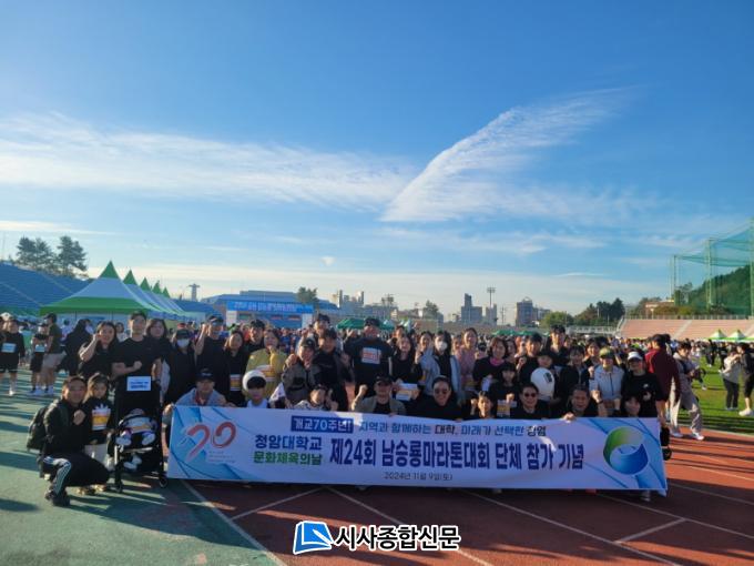 [½Ã»çÁ¾ÇսŹ® = Àå¹Î±Ô ±âÀÚ] û¾Ï´ëÇб³(ÃÑÀåÁ÷¹«´ëÇà ±è¼ºÈ«)´Â ±³Á÷¿ø ¹®ÈüÀ°Àdz¯ Çà»çÀÇ ÀÏȯÀ¸·Î Áö³ 9ÀÏ(Åä) ±³Á÷¿ø°ú Çлý, ±×¸®°í ±³Á÷¿ø °¡Á· ÃÑ 80¿© ¸íÀÌ ´Üü·Î ³²½Â·æ¸¶¶óÅæ´ëȸ¿¡ Âü°¡ÇÏ¿© Èï°Ü¿î ÈÇÕÀÇ ½Ã°£À» °¡Á³´Ù.