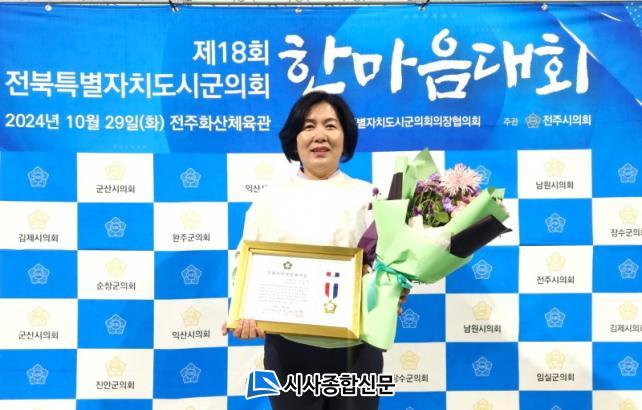 [½Ã»çÁ¾ÇսŹ® = ¿À½ÂÅà ±âÀÚ] ¼øÃ¢±ºÀÇȸ ±èÁ¤¼÷ ÀÇ¿øÀÌ Áö³ 29ÀÏ Á¦18ȸ ÀüºÏƯº°ÀÚÄ¡µµ½Ã±ºÀÇȸ ÇѸ¶À½´ëȸ¿¡¼ ÀüºÏƯº°ÀÚÄ¡µµ½Ã±ºÀÇȸÀÇÀåÇùÀÇȸ(ȸÀå ³²°ü¿ì)·ÎºÎÅÍ Áö¹æÀÇÁ¤ºÀ»ç»óÀ» ¼ö»óÇß´Ù.