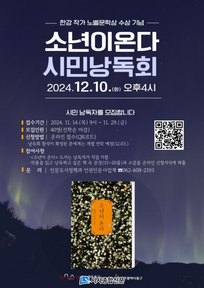 ¡®±¤ÁÖ µ¿±¸, 80³â ¿À¿ùÀÇ ¼Ò³âÀ» ¸¸³ª´Ù¡¯¸¦ ÁÖÁ¦·Î ¿¸®´Â À̹ø ³¶µ¶È¸ »çȸ´Â ¿¬±ØÀÎ ÁöÁ¤³² ¾¾°¡ ¸Ã´Â´Ù. Çà»ç¿¡´Â ½Ã¹Î, µ¶¼µ¿¾Æ¸®, Ã¥¹æ µî ´Ù¾çÇÑ µ¶¼°øµ¿Ã¼µéÀÌ ¸ð¿© ±¤ÁÖ 5¡¤18¹ÎÁÖȿÀ» ¼ÒÀç·Î ÇÑ ÀÛ°¡ÀÇ ÀÛǰ ¡®¼Ò³âÀÌ ¿Â´Ù¡¯ÀÇ ¹®ÀåµéÀ» ³¶µ¶Çϰí 5¡¤18¿¡ ¾ôÈù À̾߱âµéÀ» ³ª´ ¿¹Á¤ÀÌ´Ù.