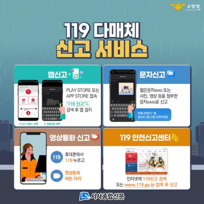 '119 ´Ù¸Åü ½Å°í ¼ºñ½º'¶õ ±âÁ¸ À½¼ºÅëȸ¦ ÀÌ¿ëÇÑ ½Å°í ¿Ü¿¡µµ ¿µ»óÅëÈ ¹× ¹®ÀÚ, ¾ÖÇø®ÄÉÀ̼Ç(¾Û, App) µî ´Ù¾çÇÑ ¹æ¹ýÀ¸·Î À§±ÞÇÑ »óȲÀ» ½Å°íÇÏ´Â ´ë±¹¹Î ¼ºñ½º´Ù.