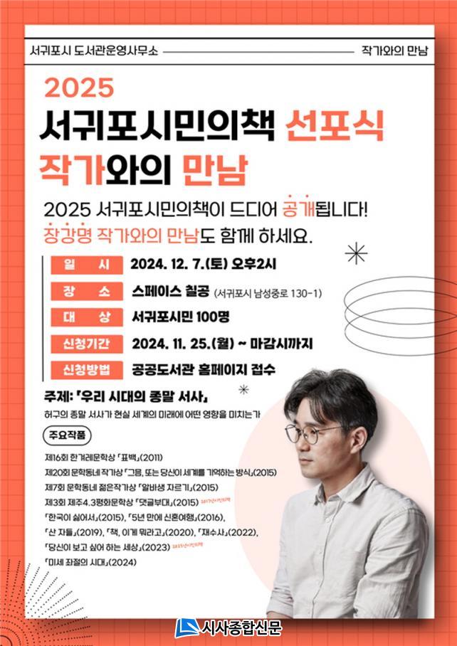 À̹ø ¼±Æ÷½Ä¿¡¼´Â ¼±ÍÆ÷½Ã°¡ ¼±Á¤ÇÑ 2025³â ¼±ÍÆ÷½Ã¹ÎÀÇÃ¥ÀÌ °ø°³µÈ´Ù. ¶ÇÇÑ ¼±Á¤µµ¼ Áß ÇÑ ±ÇÀΡ¸´ç½ÅÀÌ º¸°í ½Í¾îÇÏ´Â ¼¼»ó¡¹ÀÇ ÀÛ°¡ Àå°¸íÀ» ÃÊûÇÏ¿© ¡°¿ì¸® ½Ã´ëÀÇ Á¾¸» ¼»ç-Ç㱸ÀÇ Á¾¸» ¼»ç°¡ Çö½Ç ¼¼°èÀÇ ¹Ì·¡¿¡ ¾î¶² ¿µÇâÀ» ¹ÌÄ¡´Â°¡¡±¸¦ ÁÖÁ¦·Î ÀÛ°¡¿ÍÀÇ ¸¸³²µµ ÇÔ²² ÁøÇàµÈ´Ù. À̹ø °¿¬Àº ÀÛ°¡¿Í µ¶ÀÚµéÀÌ Á÷Á¢ ¼ÒÅëÇÒ ¼ö ÀÖ´Â ÀÚ¸®·Î, Ã¥¿¡ ´ëÇÑ ±íÀÌ ÀÖ´Â À̾߱⸦ ³ª´©¸ç ÀÇ¹Ì ÀÖ´Â ½Ã°£À» ¸¸µé °èȹÀÌ´Ù.