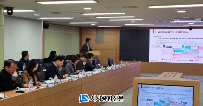 À̳¯ º¸°íȸ¿¡¼± ±¤¾ç¸¸±Ç ÀÌÂ÷ÀüÁö »ê¾÷ ÇöȲ ºÐ¼®À» ÅëÇÑ ºñÀü¡¤¸ñÇ¥¸¦ Á¦½ÃÇϰí, ÀÌÂ÷ÀüÁö ¼ÒºÎÀå Æ¯È´ÜÁö ÁöÁ¤À» À§ÇÑ Àü·« °úÁ¦ µî ¹ßÇ¥°¡ ÁøÇàµÆ´Ù.