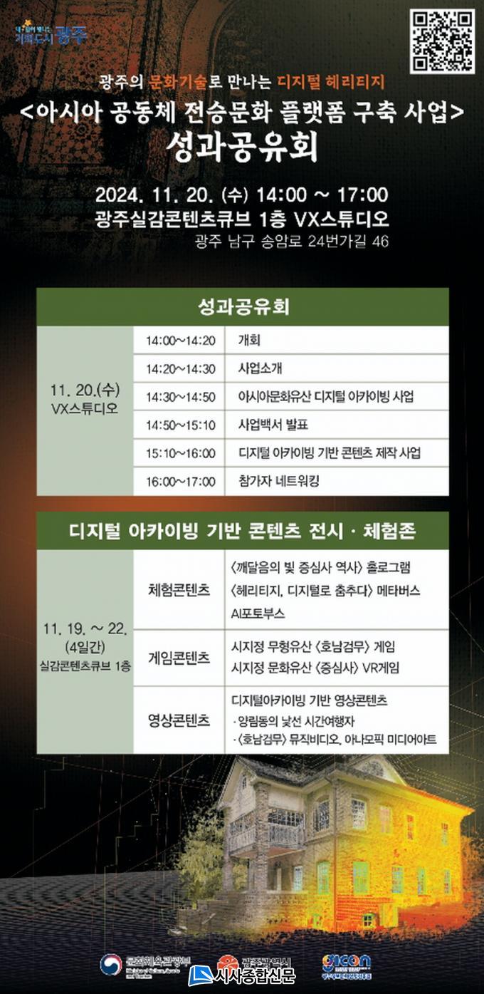 ÀÌ¿Í ÇÔ²² ±¤Áֽà ¹®ÈÀ¯»êÀÎ Áõ½É»ç, ¾ç¸²µ¿ ±Ù´ë¹®ÈÀ¯»ê, È£³²°Ë¹«¿¡ ´ëÇÑ µðÁöÅÐÀÚ·á Àü»êȸ¦ ±â¹ÝÀ¸·Î Á¦ÀÛÇÑ °ÔÀÓ¡¤¹Ìµð¾î¾ÆÆ®¡¤¹ÂÁ÷ºñµð¿À ½Ã¹üÄÜÅÙÃ÷¸¦ 19ÀϺÎÅÍ 22ÀϱîÁö ±¤Áֽǰ¨ÄÜÅÙÃ÷Å¥ºê 1Ãþ¿¡¼ ¼±º¸ÀδÙ.