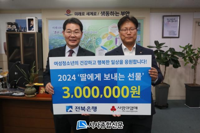 [½Ã»çÁ¾ÇսŹ® = ¿À½ÂÅà ±âÀÚ] ºÎ¾È±ºÀº JBÀüºÏÀºÇàÀÌ 20ÀÏ ¿©¼ºÃ»¼Ò³âÀ» À§ÇÑ º¸°ÇÀ§»ý¿ëǰ 100»óÀÚ(300¸¸¿ø »ó´ç)¸¦ ºÎ¾È±º¿¡ ±âŹÇß´Ù°í ¹àÇû´Ù.