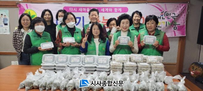 À̳¯ Çà»ç¿¡´Â Çе¿ »õ¸¶À»ºÎ³àȸ ȸ¿ø 10¿© ¸íÀÌ Âü¿©ÇØ Âû¹ä°ú °ß°ú·ù ¸êÄ¡ººÀ½ ¹ÝÂùÀ» ¸¸µé¾î ³¢´Ï¸¦ °Å¸£±â ½¬¿î µ¶°Å°¡±¸¿¡°Ô Àü´ÞÇÏ¸ç °Ç°°ú ¾ÈºÎ¸¦ È®ÀÎÇß´Ù.