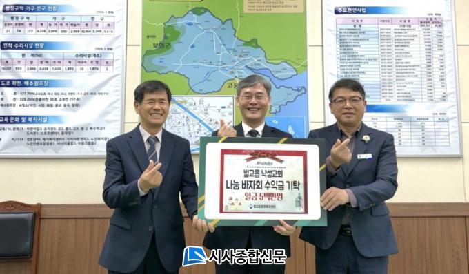 [½Ã»çÁ¾ÇսŹ® = ¿À½ÂÅà ±âÀÚ] º¸¼º±ºÀº Áö³ 10¿ù 12ÀÏ ¹ú±³À¾ ³«¼º±³È¸(¸ñ»ç À±¸íÇö)°¡ »ç¶û³ª´® ¹ÙÀÚȸ¿¡¼ ¸ð±ÝµÈ ¼öÀÍ±Ý 5¹é¸¸ ¿ø Àü¾×À» Áö¿ª»çȸ ¼Ò¿Ü°èÃþ Áö¿øÀ» À§ÇØ ±âºÎÇß´Ù°í ¹àÇû´Ù.