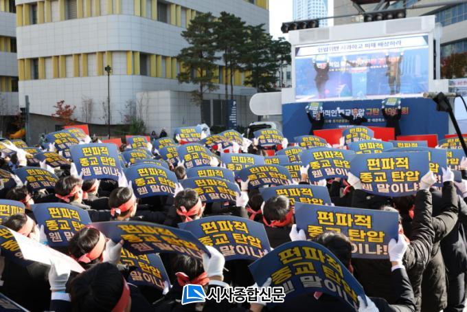 À̳¯ ¡®ÆíÆÄÀû Á¾±³Åº¾Ð ±Ôź °áÀÇ´ëȸ¡¯¿¡ ¸ðÀÎ ½ÅõÁö¿¹¼ö±³ Áõ°ÅÀ帷¼ºÀü º£µå·ÎÁöÆÄ(ÀÌÇÏ ½ÅõÁö º£µå·ÎÁöÆÄ)ÀÇ ¼ºµµµéÀº ¿ïºÐÀÌ °¡µæÇÑ ¸ñ¼Ò¸®·Î ¡®ÆíÆÄÀûÀÎ Á¾±³Åº¾Ð¡¯ÀÌ ¹ÎÁÖ°øÈ±¹ÀÎ ´ëÇѹα¹¿¡¼ Àý´ë À־ ¾È µÇ´Â Çå¹ý¿¡ ¹ÝÇÏ´Â ÇàÀ§ÀÓÀ» °·ÂÇÏ°Ô ºñÆÇÇß´Ù.