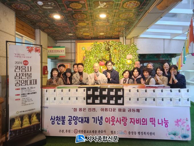 À̹ø Çà»ç´Â »ïõºÒ°ø¾ç´ëÀç ±â³ä Çà»ç¸¦ ¾ÕµÎ°í °üÀ½»ç ÁÖÁö ¼Ò¿î½º´Ô ÁÖÀç·Î ¸¶·ÃµÆÀ¸¸ç ÃæÀ嵿 ÅëÀå´Ü(Åë¿ìȸÀå À̾缷)µµ ÇÔ²²Çß´Ù. °üÀ½»ç´Â ¾Æ¸§´Ù¿î ¸¶À» °øµ¿Ã¼¸¦ Á¶¼ºÇÏÀÚ´Â Àǹ̸¦ ´ã¾Æ 500ÀκРºÐ·®ÀÇ ¶±, À½·á, °úÀÏ µîÀ» °ü³» µ¹º½ÀÌ¿ô Æ÷ÇÔ Áö¿ªÁֹε鿡°Ô Àü´ÞÇß´Ù.