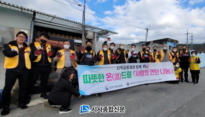 [½Ã»çÁ¾ÇսŹ® = ¿À½ÂÅà ±âÀÚ] ±¤ÁÖÁö¹æº¸ÈÆÃ»(ûÀå ÇϼºÀÏ)Àº 26ÀÏ Á¶¼±¶óÀ̿½ºÅ¬·´ ȸ¿øµé°ú ÇÔ²² ±¤ÁÖ ºÏ±¸ÀÇ ±¹°¡À¯°øÀÚ ¹è¿ìÀÚ À̡ۼø(85¼¼)´Ô µî 7°¡±¸¿¡ ¡®»ç¶ûÀÇ ¿¬Åº¡¯ 1,500Àå°ú À§¹®Ç°À» Àü´ÞÇÏ¿´´Ù.