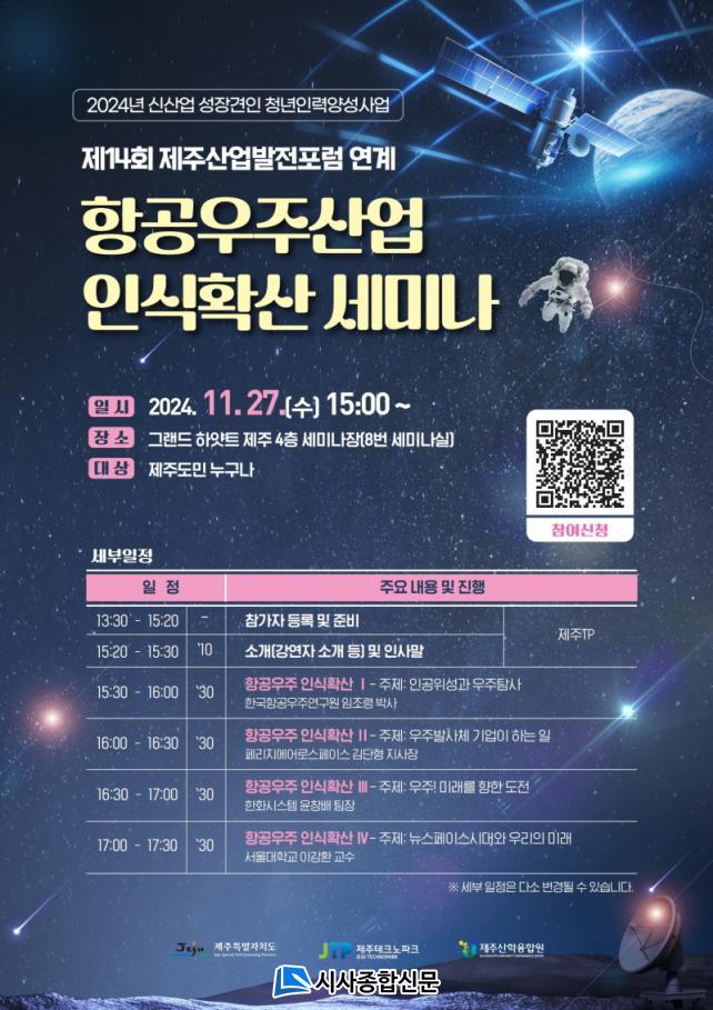 À۳⿡ À̾î 2¹øÂ°·Î °³ÃֵǴ À̹ø ¼¼¹Ì³ª´Â, Á¦ÁÖ Ç×°ø¿ìÁÖ»ê¾÷ÀÇ ¹Ì·¡ Àü·« ¹æ¾È¿¡ ´ëÇØ ³íÀÇÇϰí Á¦ÁÖ¿¡¼ Ȱµ¿ÇÏ´Â Ç×°ø¿ìÁÖ±â¾÷ Á¤º¸¸¦ Á¦°øÇÏ¿© Á¦ÁÖ Ã»³âÀÇ Ãë¾÷ ±âȸ È®´ë¿¡ ¸ñÀûÀ» µÎ°í ÀÖ´Ù.