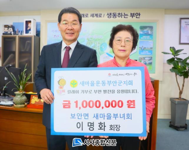 [½Ã»çÁ¾ÇսŹ® = ¿À½ÂÅà ±âÀÚ] ºÎ¾È±ºÀº Áö³ 26ÀÏ º¸¾È¸é »õ¸¶À»ºÎ³àȸ À̸íÈ È¸ÀåÀÌ ºÎ¾È±º °íÇâ»ç¶ûÃßÁøÇùÀÇȸ°¡ ÁøÇàÇÏ´Â »çȸ´Üü ¸±·¹ÀÌ ±âºÎÀÇ ´Ù¼¸ ¹øÂ° ÁÖÀÚ·Î ³ª¼ 100¸¸ ¿øÀÇ °íÇâ»ç¶û±âºÎ±ÝÀ» ±âŹÇß´Ù°í ¹àÇû´Ù.
