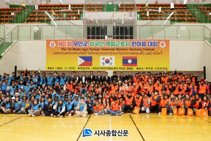 [½Ã»çÁ¾ÇսŹ® = ¿À½ÂÅà ±âÀÚ] ¹«¾È±º(±º¼ö ±è»ê)Àº 27ÀÏ ¹«¾È±º½ºÆ÷Ã÷ÆÄÅ©¿¡¼ °ü³» ¿Ü±¹ÀÎ °èÀý±Ù·ÎÀÚ °í¿ëÁÖ ³ó°¡¿Í ±Ù·ÎÀÚµéÀÌ ÇÑÀÚ¸®¿¡ ¸ð¿© ÈÇÕÀ» ´ÙÁö´Â ÇѸ¶À½´ëȸ¸¦ °³ÃÖÇß´Ù.