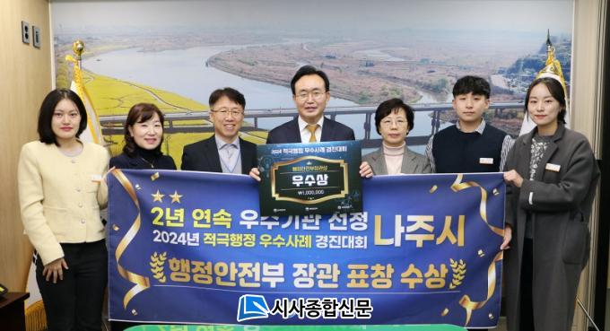 ³ªÁÖ½Ã(½ÃÀå À±º´ÅÂ)´Â ±¹¹«Á¶Á¤½Ç, ÇàÁ¤¾ÈÀüºÎ, ÀλçÇõ½Åó¿¡¼ °øµ¿ ÁÖ°üÇÑ 2024³â Àû±ØÇàÁ¤ ¿ì¼ö»ç·Ê °æÁø´ëȸ¼ ¡®365ÀÏ ½Ã°£Á¦ º¸À°½Ç ¿î¿µ¡¯ »ç¾÷ÀÌ ÇàÁ¤¾ÈÀüºÎÀå°ü»óÀ» ¼ö»óÇß´Ù°í 27ÀÏ ¹àÇû´Ù.