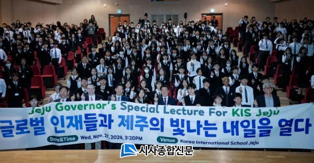 ¿À¿µÈÆ Áö»ç´Â 27ÀÏ ¿ÀÈÄ ¿µ¾î±³À°µµ½Ã ¼ÒÀç Çѱ¹±¹Á¦Çб³ Á¦ÁÖÄ·ÆÛ½º(Korea International School Jeju Campus)¿¡¼ Çлý 250¿©¸íÀ» ´ë»óÀ¸·Î Ư°À» ÁøÇàÇß´Ù. ¿À Áö»ç´Â ¡®±Û·Î¹ú ÀÎÀçµé°ú Á¦ÁÖÀÇ ºû³ª´Â ³»ÀÏÀ» ¿´Ù¡¯¸¦ ÁÖÁ¦·Î Á¦ÁÖÀÇ ¹Ì·¡ ºñÀüÀ» °øÀ¯Çϰí, Á¦ÁÖ ÀÎÀçµéÀÇ ²ÞÀ» Ű¿ì±â À§ÇÑ µµÁ¤ÀÇ Á¤Ã¥À» ¼³¸íÇß´Ù.